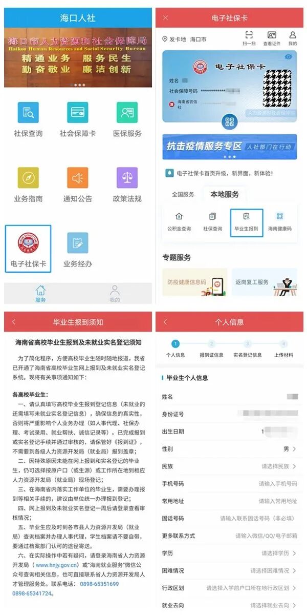 【就业政策】海南高校毕业生注意啦!可通过电子社保卡办理报到手续